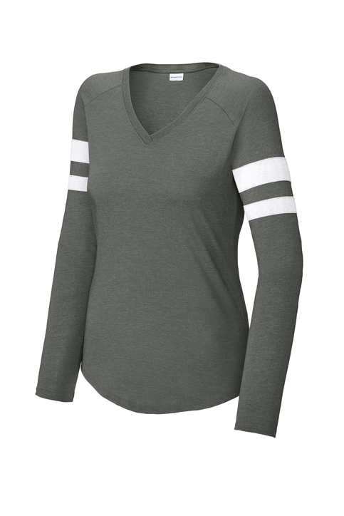 Sport-Tek® Women's Halftime Stripe Long Sleeve V-Neck Tee. LST6043