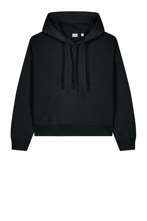 A flattering hoodie with contemporary flair. An adjusted length and refined details add a feminine touch to this sustainably-made sweatshirt.