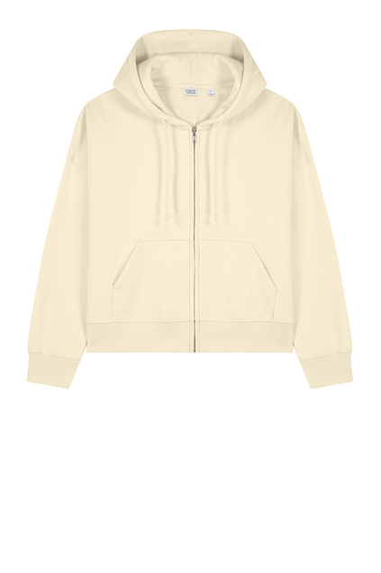 A flattering zipped hoodie with contemporary flair. An adjusted length and refined details add a feminine touch to this sustainably-made sweatshirt.