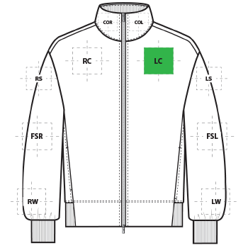 | LC | Left Chest | 4"H x 4"W | Primary |
