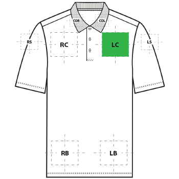 | LC | Left Chest | 4"H x 4"W | Primary |