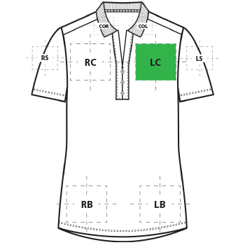 | LC | Left Chest | 4"H x 4"W | Primary |