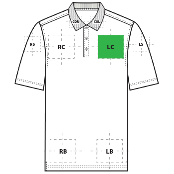 | LC | Left Chest | 4"H x 4"W | Primary |