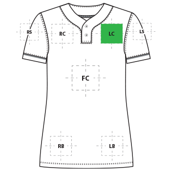 | LC | Left Chest | 4"H x 4"W | Primary |